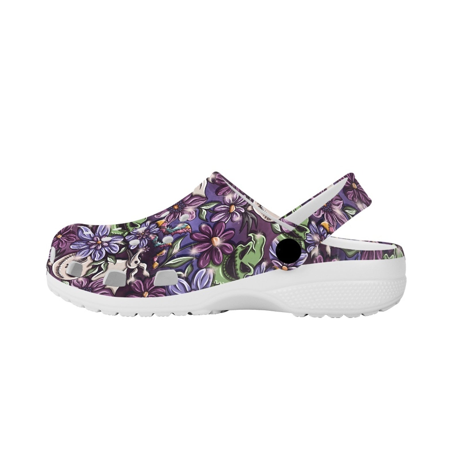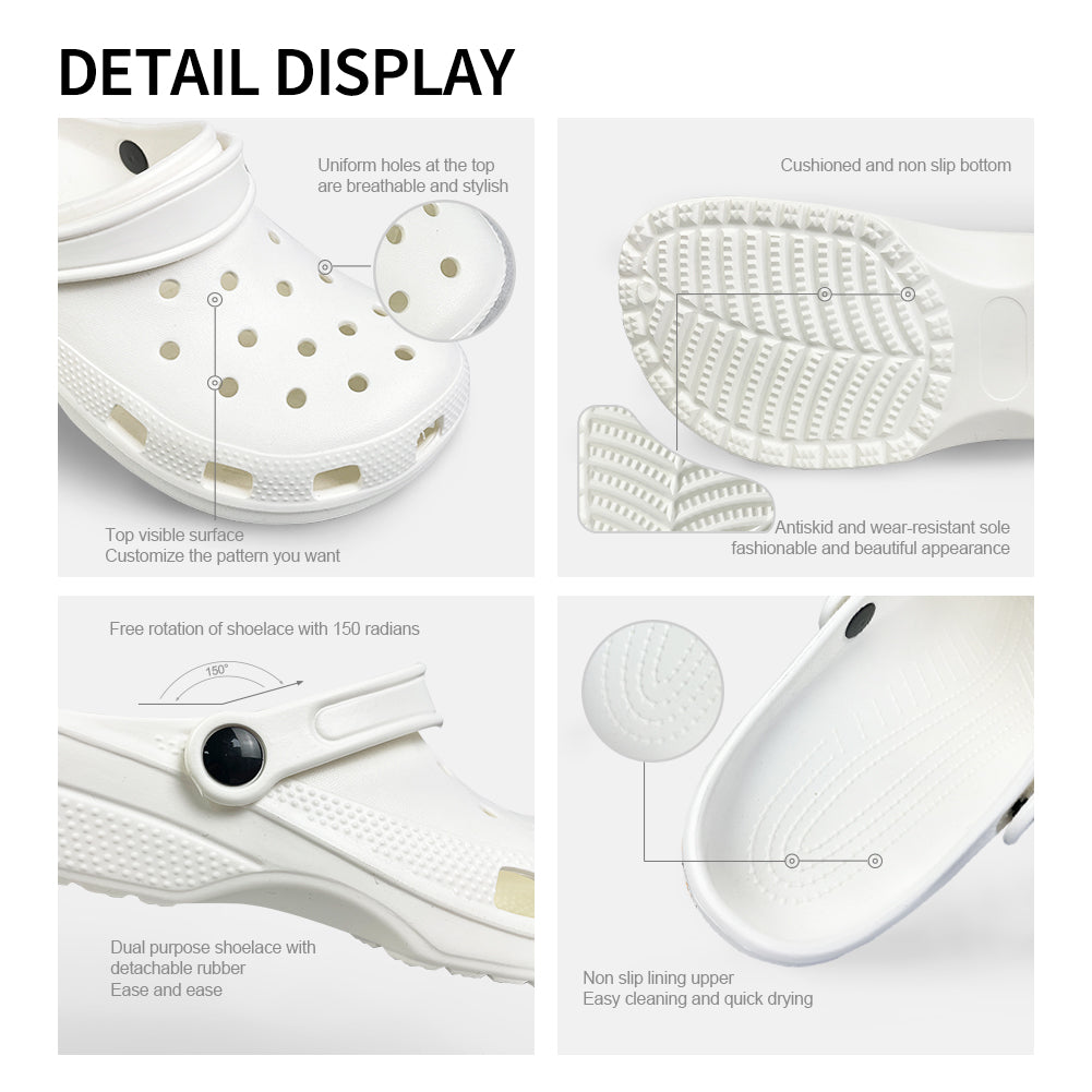 Step out in comfort and style with our custom printed EVA clogs, available in any of our Olivia’s Outfits designs. These versatile shoes can be worn as slip-on sandals or secured with the rotating heel strap for a flip-flop style fit. Lightweight, durable and easy to clean, they’re the perfect choice for everyday wear indoors or outdoors.